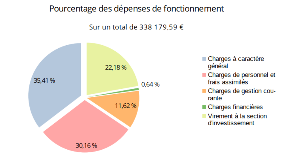 Les charges financières correspondent aux charges d’intérêts supportées par la collectivité pour le remboursement de l’emprunt en cours.